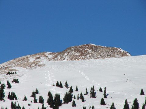 2/14/2012 @ 2:30pm on Forgotten Trees with an elev. 10,200-10,400 (estimated from topo).