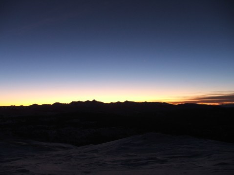 Each step of the trek through the old fire-scarred area just South of Uneva up into the 30 degree sloped gully produced incredible views that improved with each lunge upward. Soon, treeline was well below and Panoramic views of the Ten-Mile and Sawatch Ranges started to peak out in all directions. The ridge-top was so scoured by 20-30 mph wind gusts that boot packing was the only remaining option of ascent. As I traversed north to the ridge-line that lay south of Uneva Peak, it was obvious that the prevailing west winds have been working hard to load the easterly aspects with as much faceted snow as possible. This wind loading is burying the “White Dragons” of the past record-breaking 2010-2011 winter season and hiding potentially very deadly scenarios for our upcoming season. Just stick that under your Avy-Savy-Hats and save it for later on this winter…