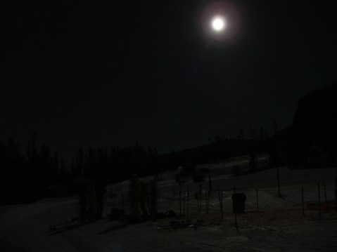 Spirits were high as we skinned swiftly by other children of the night and their canine friends. Laughter and good vibes were the tone of the troop and we were soon gathered at the base of Avanti Chair. Snowcats meticulously laying down row after row of perfect moonlit corduroy.
