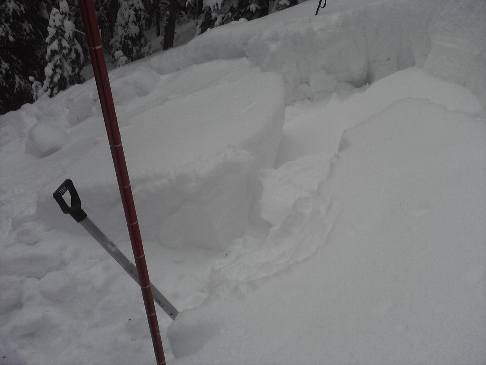 Did a very nice ECT (Extended Column Test) 30cm deep X 90cm wide X to 120cm deep from surface, back cut out.