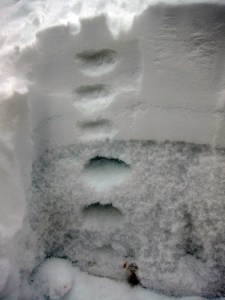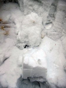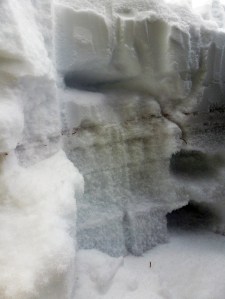 I increased the contrast on this shot and you can easily see the different layers, harder on top, softer underneath. Shitty but we came to this area because there is little consequence with the crappy pack.